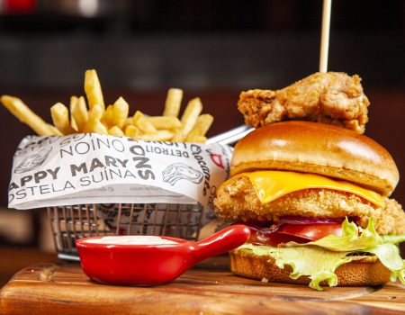 Filé de frango grelhado ou empanado, no pão Brioche. Acompanha queijo, alface, tomate, cebola roxa e tempero especial. Nesta versão ele ainda vem acompanhado de uma deliciosa Chicken wings.